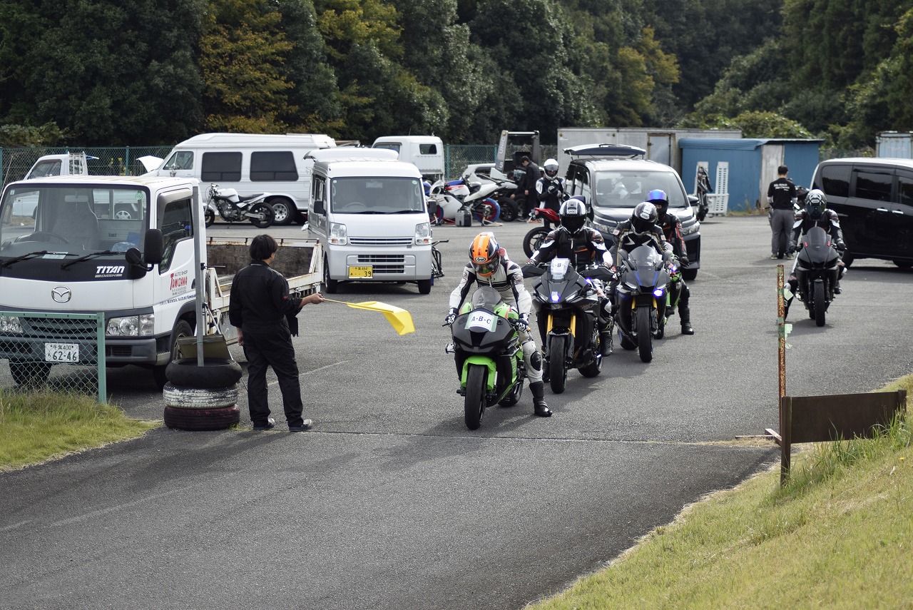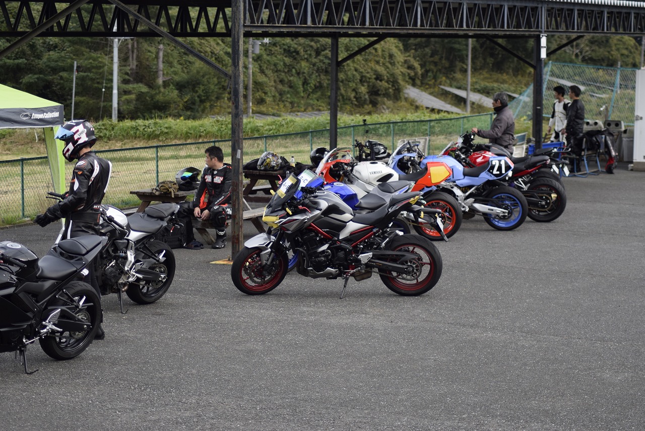 ツナギ無しでも走行できるようクラス分けを実施しました。初めてサーキットを走る方もご参加いただき楽しんでいただけたと思います。自走で参加の方々には施設のベンチをご利用いただきました。