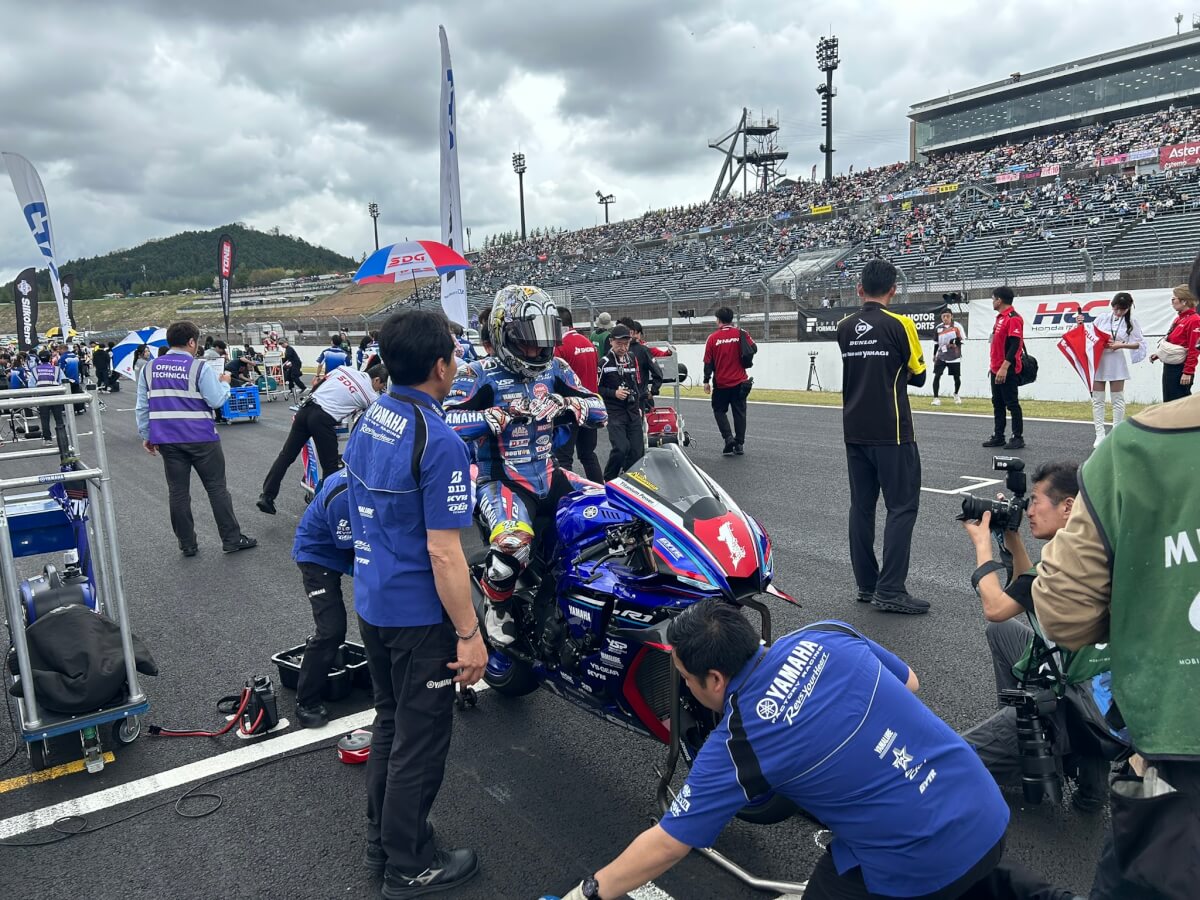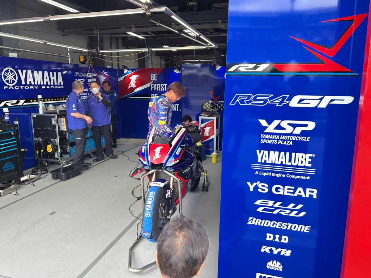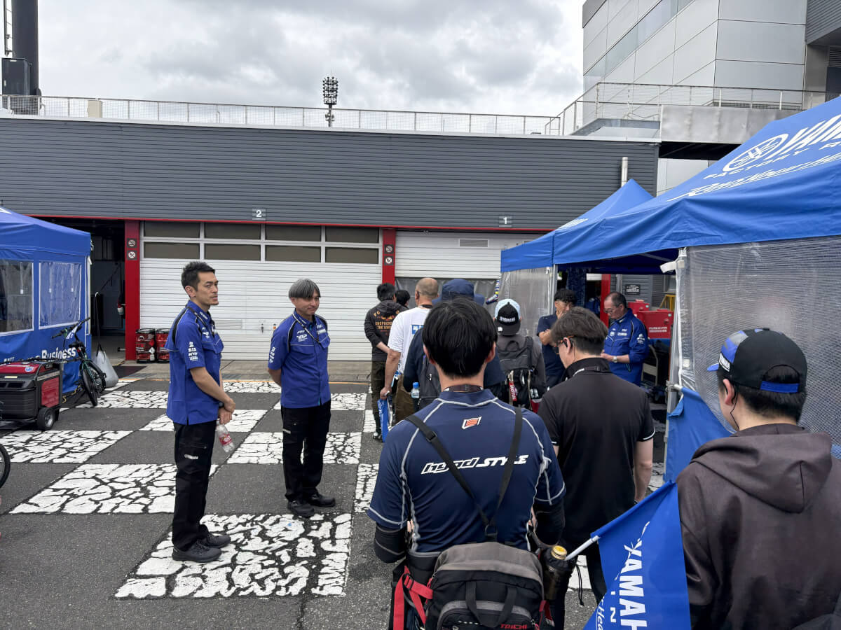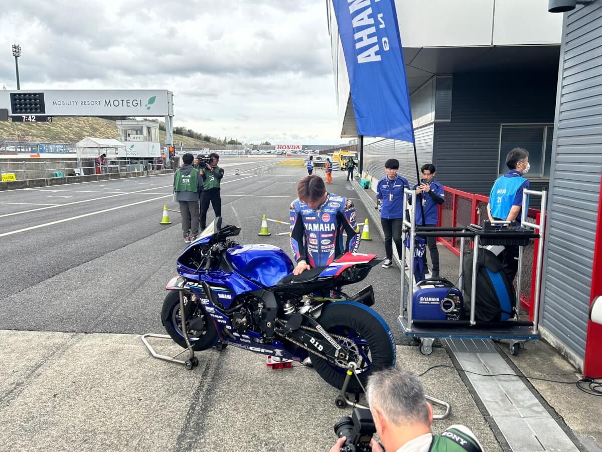 その後はピットウォークの開催です!ピット前は賑わっており各選手とファンの交流が行われていました。全日本などですと選手とファンの距離感も近く応援にも熱が入ります!ピットウォークのタイミングでヤマハワークスが車両の確認をしていました。かっこよすぎる!!