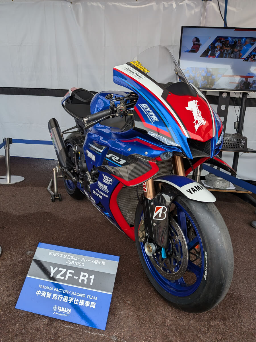 ブースには中須賀選手仕様のR1展示がありました!オーラ出てます!