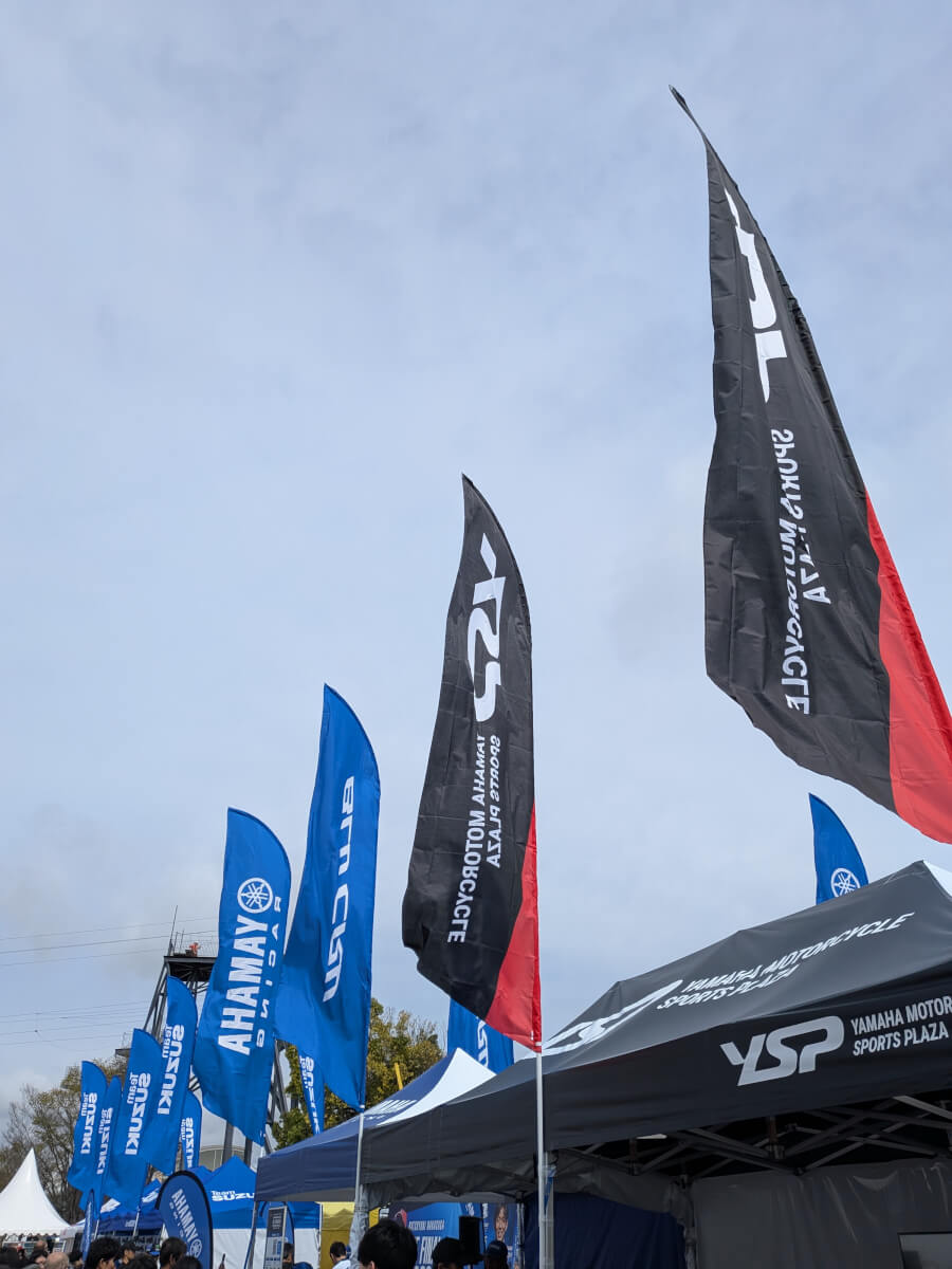 到着後は青い旗を探してヤマハブースへ!手荷物を預けての観戦は非常に助かります。